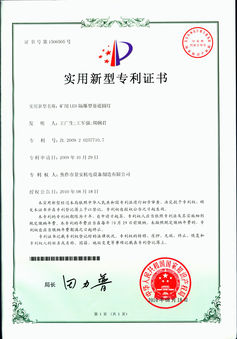 焦作景安公司始終堅(jiān)持“以科技為先導(dǎo),以市場(chǎng)為導(dǎo)向”的發(fā)展戰(zhàn)略,不斷進(jìn)行新產(chǎn)品的研制和開發(fā),在國(guó)家“六五”到“九五”期間,承擔(dān)和參與了國(guó)家多項(xiàng)科技攻關(guān)項(xiàng)目。并被中國(guó)電器工業(yè)協(xié)會(huì)評(píng)定為“質(zhì)量可信產(chǎn)品”。特別是在礦用防爆燈領(lǐng)域,礦用隔爆型半導(dǎo)體(LED)照明燈具,2008年列入國(guó)家火炬計(jì)劃,獲2009年河南省工業(yè)和信息化廳的科技成果二等獎(jiǎng),并擁有多項(xiàng)國(guó)家專利。